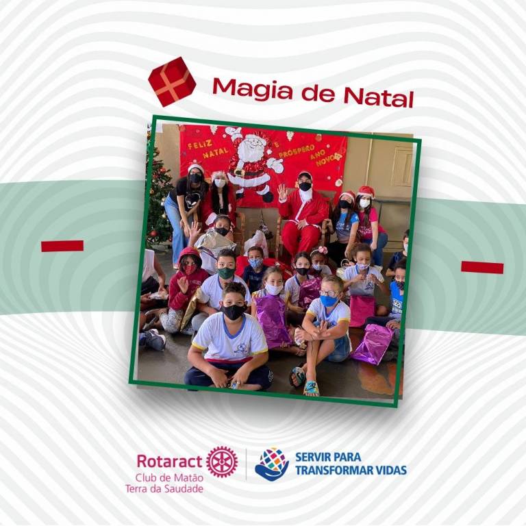 Através da ação “Magia de Natal”, o clube firmou parceria com o Interact Club de Matão Terra da Saudade, onde juntos com as doações recebidas, realizamos a entrega de brinquedos na Escola Estadual Roberto Veltre, no dia 09/12/2021.